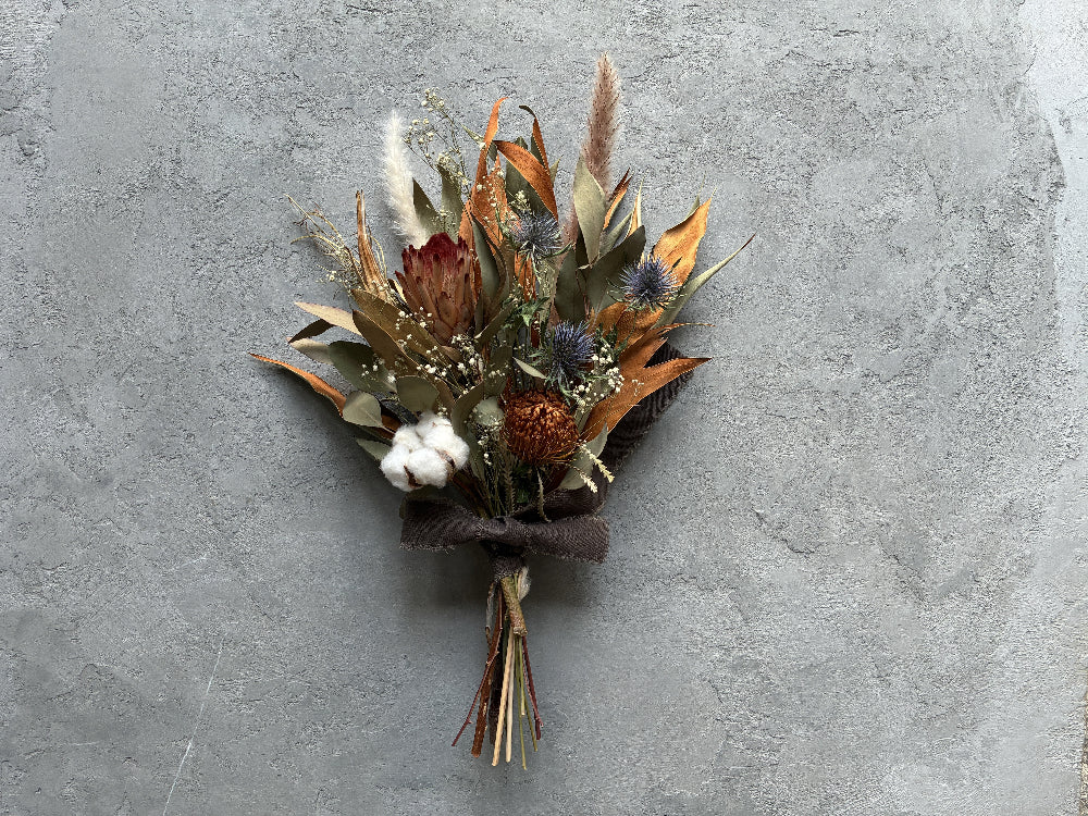 贈り物にもぴったりのアレンジメントを、季節のドライフラワーでお作りしました。